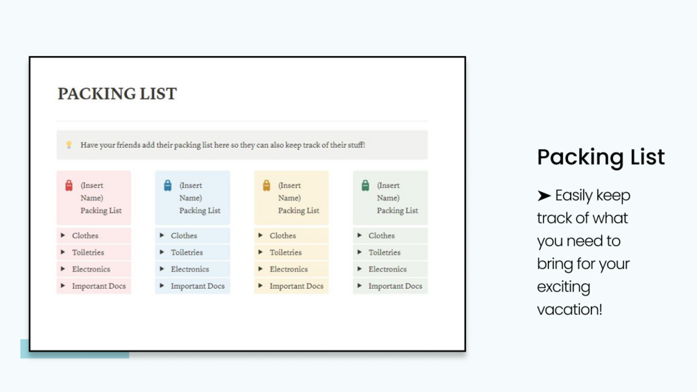 Organize your vacation with the help of your friends with this simple Notion template!